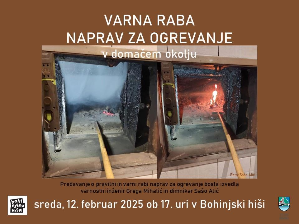 Vabljeni na predavanje o varni rabi naprav za ogrevanje in pravilnem kurjenju v pečeh v domačem okolju, ki bo v sredo, 12. februarja 2025 ob 17. uri v Bohinjski hiši.