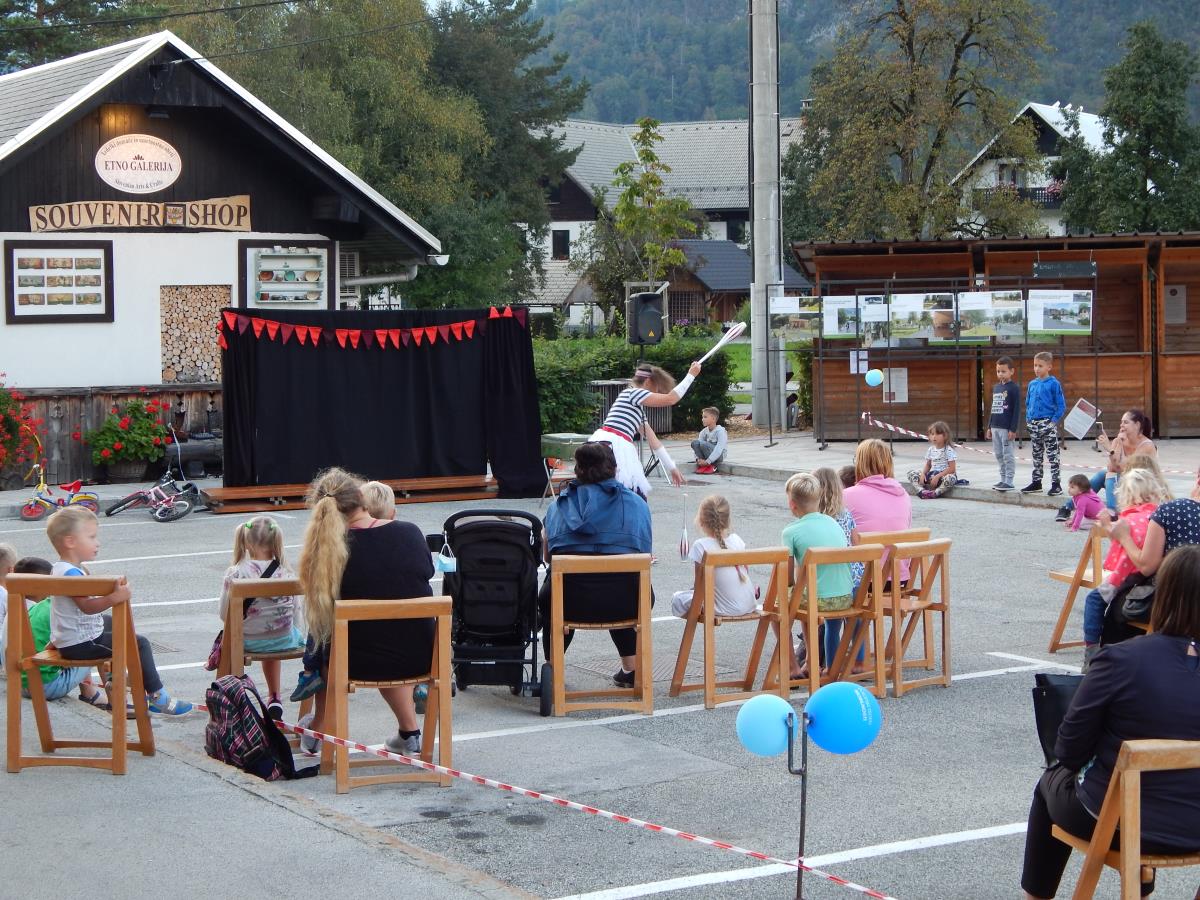 Park(irni) dan predstavlja promocijske aktivnosti, s katerim se poleg spodbujanja trajnostne mobilnosti prikazuje tudi pomen javnih površin, trgov in zelenic v središčih naselij. Zato smo v sklopu projekta zaprli parkirišče pri tržnici v Bohinjski Bistrici in na njem v času tedna mobilnosti vzpostavili javno površino za druženje. Na parkirišču smo v tednu mobilnosti izvedli vrsto različnih aktivnosti. Aktivnosti so se nanašale predvsem na umestitev različnih dogodkov na parkirišče in pokazati, kako drugačno bi bilo središče naselja, če bi parkirišče zamenjali za vaški trg. Tako smo organizirali kreativno delavnico ter izvedli kolesarski poligon za učence osnovne šole, na katerem so se s skiroji in kolesi preizkusili v vožnji mimo ovir. Izvedli smo cirkuško predstavo s cirkuško skupino Čupakabra, ki so nas tako starejše kot najmlajše nasmejali in zabavali. Pripravili smo športni dogodek za otroke, na katerem smo skupaj z Teniško šolo Žnidar pripravili poligon iz naravnih materialov in pokazali različne ideje za vsakodnevno gibanje brez dragih pripomočkov. Na dogodku smo organizirali tudi brezplačni servis koles.