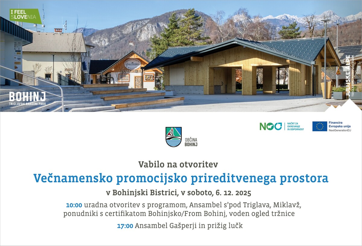 Občina Bohinj je z izgradnjo Večnamensko promocijsko prireditvenega prostora v Bohinjski Bistrici uspešno kandidirala na Javnem razpisu za sofinanciranje vlaganj v javno in skupno turistično infrastrukturo in naravne znamenitosti v turističnih destinacijah, ki ga je objavilo Ministrstvo za gospodarstvo, turizem in šport.